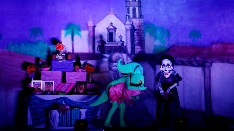 Guadalupe, Zacatecas. – Buscando el esparcimiento familiar y cerrando las actividades del Festival de Día de Muertos de Guadalupe, el ayuntamiento presentó este domingo junto a empresarios locales, la obra teatral “Coco”, basada en la película del mismo nombre, la cual tuvo al auditorio municipal como escenario, donde cientos de personas se dieron cita para disfrutar de este evento.