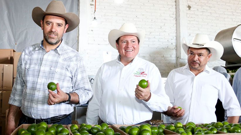 Trinidad García de la Cadena, Zacatecas.- Productores de limón de Trinidad García de la Cadena recibieron en sus campos de producción al Gobernador Alejandro Tello quien, durante su visita, se comprometió a fortalecer al sector limonero que actualmente es generador de cientos de empleos y busca una certificación de sanidad para ampliar la exportación al extranjero.