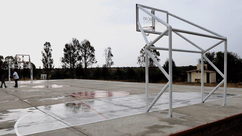 Se trata de una cancha de usos múltiples donde se puede practicar futbol, basquetbol, voleibol, entre otras disciplinas deportivas; cuenta con piso de concreto reforzado, malla de 620 metros cuadrados, muro de mampostería para la cancha, rodapié a pase de mampostería para cerco perimetral y 150 metros de cadena de concreto simple para fijar malla ciclónica.