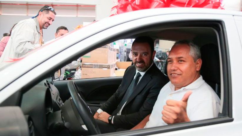 Como parte de la celebración, el Gobernador encabezó la rifa de un auto, motocicletas y electrodomésticos para las y los trabajadores.