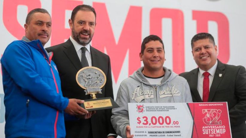 El mandatario encabezó los festejos del 32 aniversario del Sutsemop, y condecoró a trabajadores sindicalizados con entre 5 y 50 años de servicio