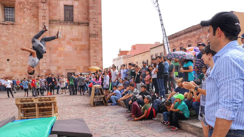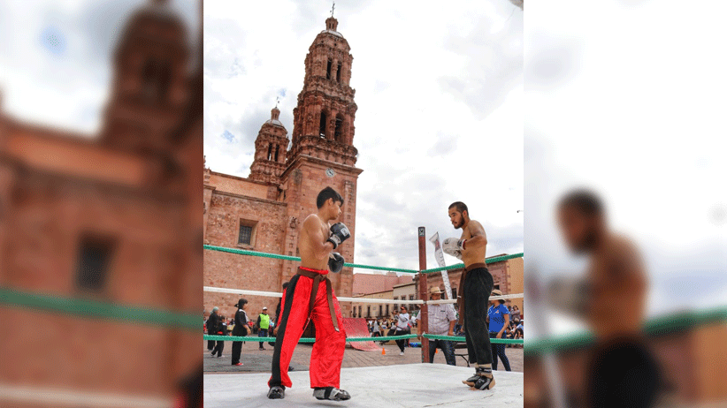 A pesar de la lluvia, en la Plaza de Armas del Centro Histórico de Zacatecas más de 300 deportistas hicieron exhibiciones de deporte urbano, como BMX extremo, skateboard, parkour, luchas, boxeo, vencidas y una muestra especial de defensa personal para mujeres.