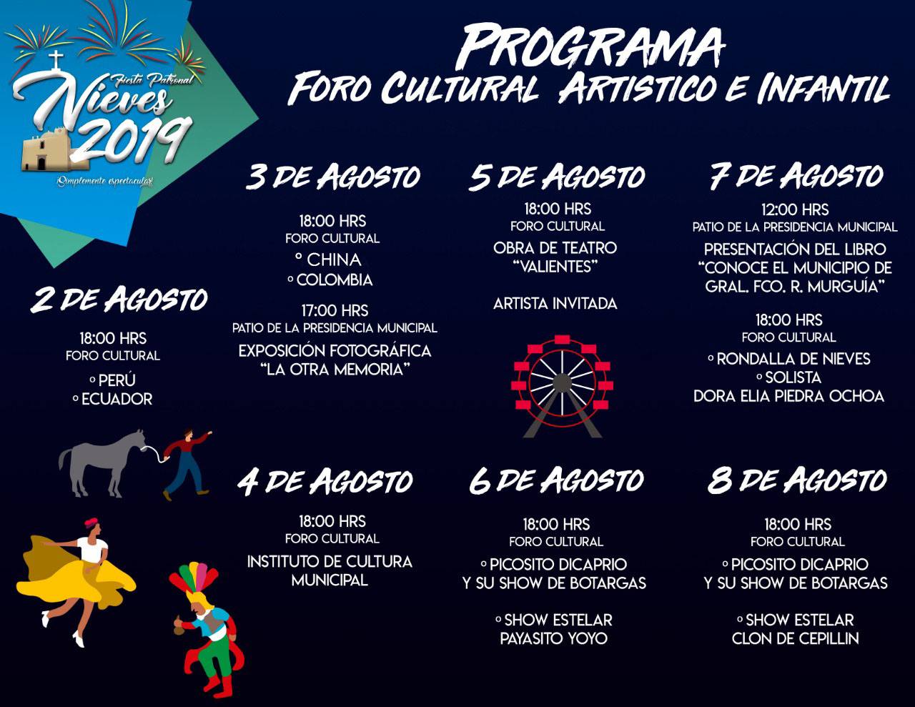 Conoce el Programa del Teatro del Pueblo, así como, el del Foro Cultural, Artístico e Infantil de la Fiesta Patronal Nieves 2019