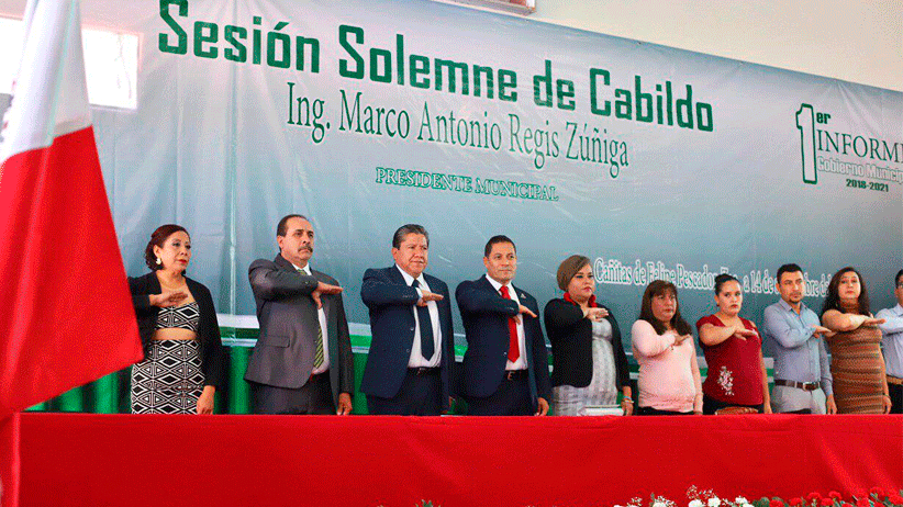 Durante su primer informe, el edil, reconoció el trabajo coordinado entre el Gobierno de México y el ayuntamiento, destacando la llegada a la región de más de 100 elementos de la Guardia Nacional y la incorporación de una centena de becarios al Programa Jóvenes Construyendo el Futuro, además de la entrega de becas a jóvenes de bachillerato y adultos mayores.