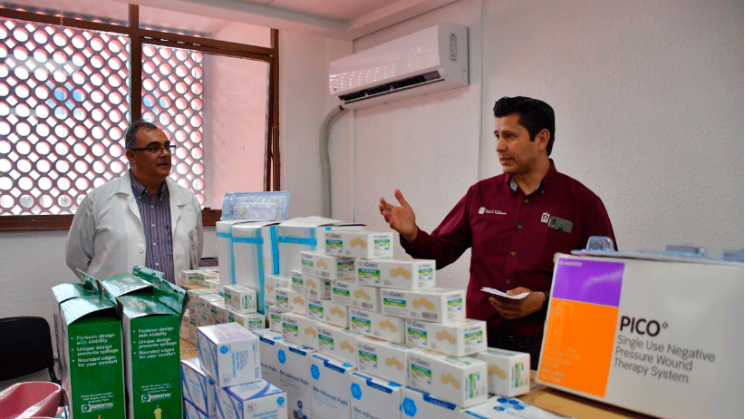 Guadalupe, Zac.– Comprometido con el sector médico de la entidad, el presidente municipal de Guadalupe, Julio César Chávez Padilla, entregó equipo médico, quirúrgico, insumos y protectores faciales impresos en 3D en el Hospital General del Instituto Mexicano del Seguro Social (IMSS) ubicado en la capital del estado.