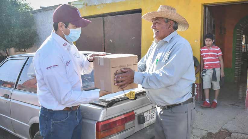Por instrucciones del Gobernador Alejandro Tello, la Seduvot entrega los paquetes de material a las presidencias municipales para que, a su vez, éstas las distribuyan a las familias beneficiadas con las medidas de sanidad necesarias para evitar el contagio del COVID-19.