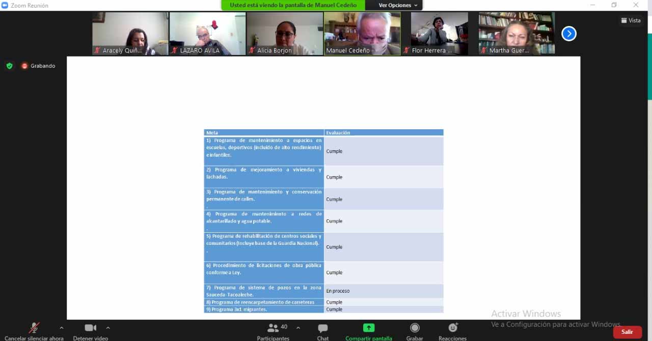 Y de igual manera, para llegar a estos resultados, se realizaron recorridos físicos para constatar y evidenciar los avances en áreas como Servicios Públicos y Obras Públicas, en los cuales de manera presencial se verificó la sustitución de luminarias y la recolección de residuos sólidos, por mencionar algunos temas de la revisión.