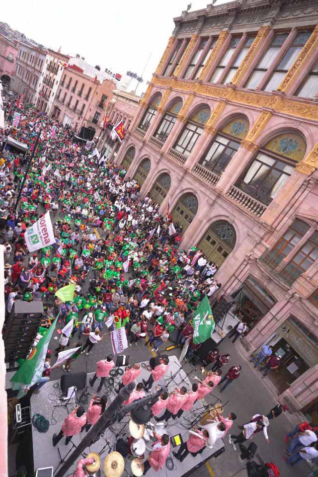 Zacatecas, Zac.- “Los tiempos de Dios son perfectos y hay justicia divina. En 2013 nos robaron la elección a Xerardo y a mí a billetazos, pero hoy –con más de 25 puntos de ventaja– vamos a arrasar en la capital y David Monreal será gobernador”, aseveró Jorge Miranda Castro en su cierre de campaña este domingo en la Avenida Hidalgo del Centro Histórico.
