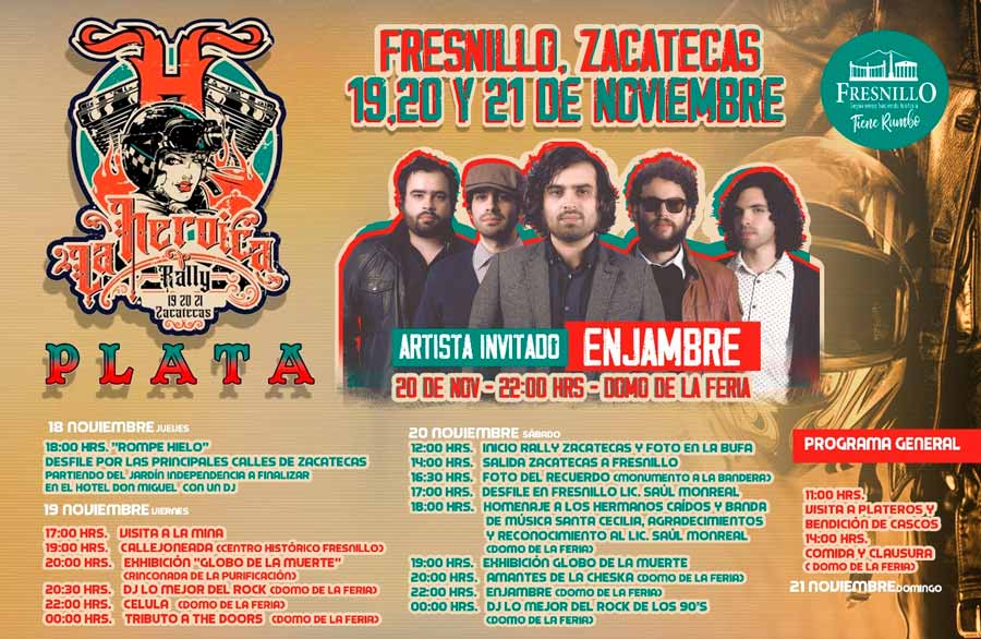 Fresnillo, Zac.- El Presidente Municipal, Saúl Monreal Ávila, dio a conocer que Fresnillo será sede del evento biker “La Heroica de Plata” los próximos 19, 20 y 21 de noviembre, donde se congregarán más de 2 mil motociclistas de clubes, locales, nacionales e internacionales.