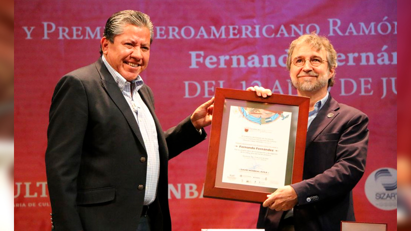 Jerez de García Salinas, Zac.- En una emotiva ceremonia celebrada en el Teatro Hinojosa de Jerez, Zacatecas, encabezada por el Gobernador David Monreal Ávila, el escritor, ensayista y editor mexicano Fernando Fernández, recibió el Premio Iberoamericano “Ramón López Velarde”, en el marco de las XXV Jornadas Lopezvelardeanas 2022.