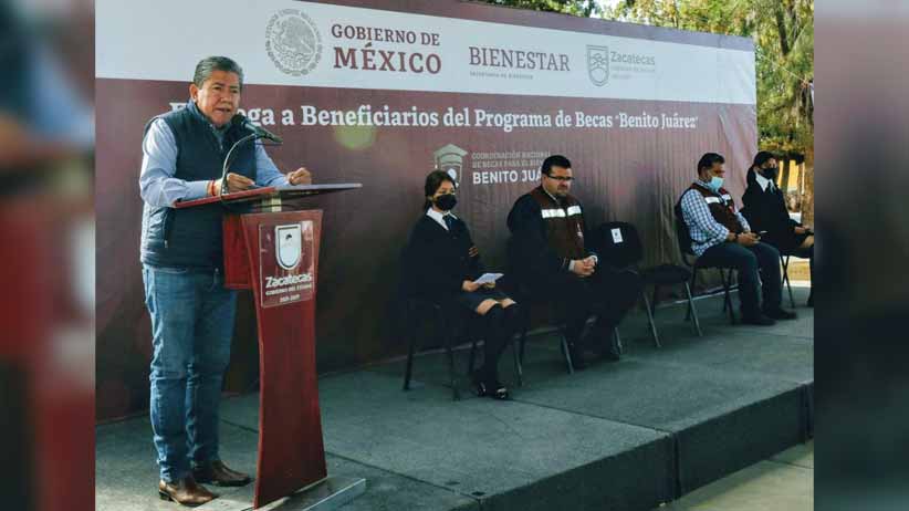 Este sábado, en Pánfilo Natera, el mandatario, junto al Secretario de Desarrollo Social, Carlos Zúñiga Rivera, y el Coordinador Regional de la Dirección de Desarrollo Regional y Vinculación Social, Oscar Omar González, entregó 536 Becas para el Bienestar Benito Juárez, a alumnas y alumnos de educación media superior, a fin de reforzar la economía de sus familias.