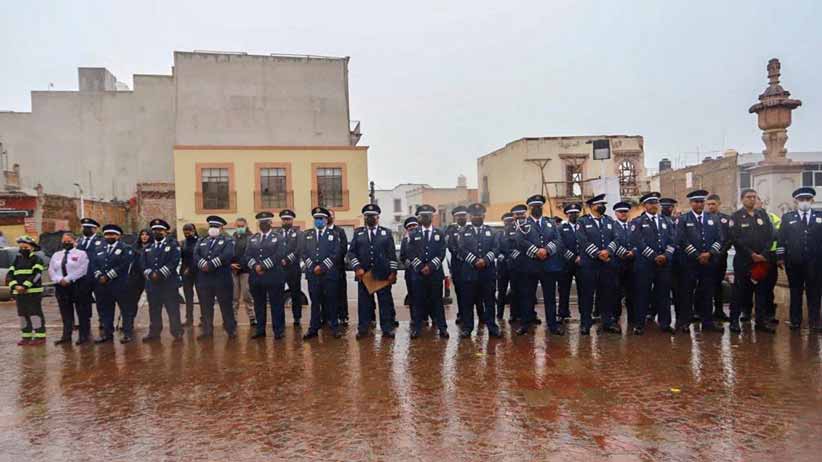 A pesar de la lluvia, el alcalde y los funcionarios municipales se mantuvieron en la explanada para honrar al Cuerpo de Bomberos por la valiosa labor que realizan para garantizar el bienestar de los fresnillenses.