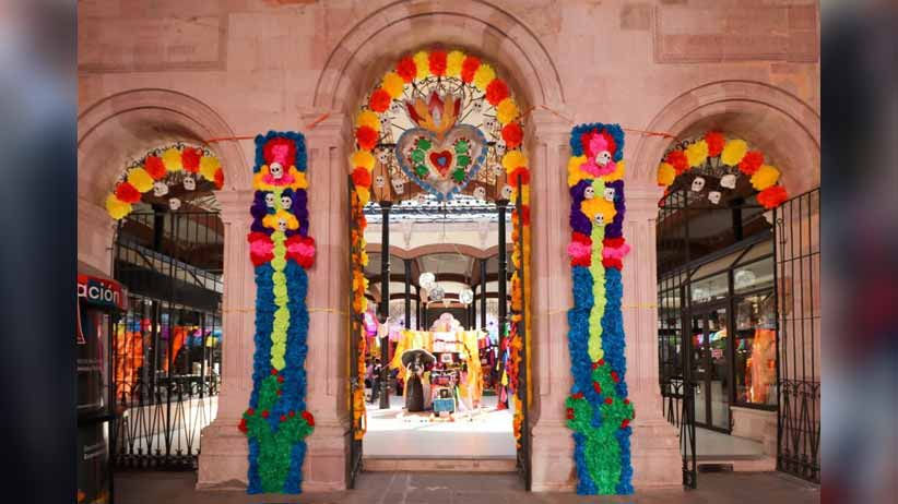 El Centro Histórico de la capital zacatecana luce espectaculares arcos elaborados con materiales típicos de esta temporada del año, como flores de papel, flores de cempazúchitl, papel picado, calaveritas, alebrijes, catrinas y catrines que le dan un gran colorido, aunado a la luz arquitectónica que les da mayor realce.