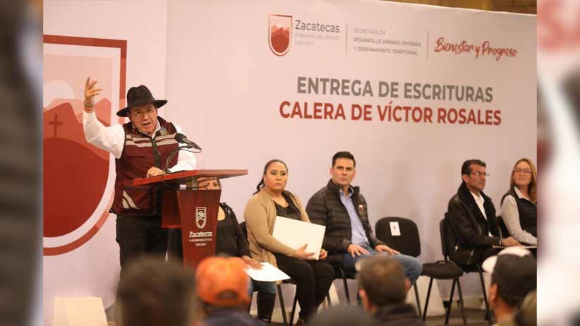 Calera, Zacatecas.- En la búsqueda de la regeneración del tejido social, la seguridad, la justicia y el bienestar de las y los zacatecanos, el Gobernador David Monreal Ávila cumplió su compromiso con pobladores de Calera, al entregarles las escrituras de su patrimonio.