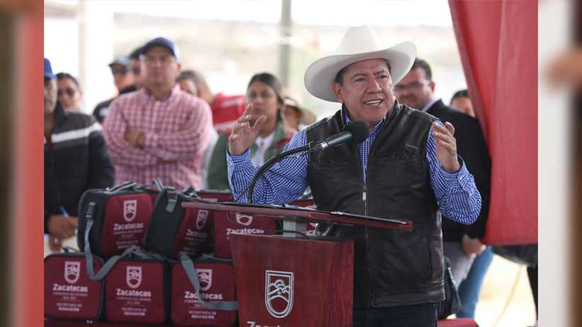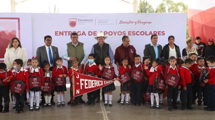 - El mandatario visitó la comunidad Rancho Grande, en Fresnillo, para llevar apoyos para la compra de uniformes e insumos en 12 escuelas