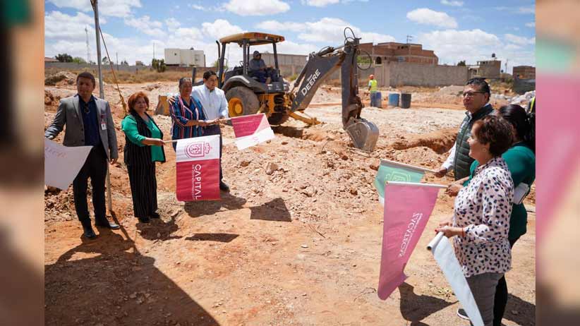 El alcalde Jorge Miranda Castro dio inicio a la construcción de la primera cancha de usos múltiples en la colonia La Escondida para beneficiar a las y los habitantes de la zona.