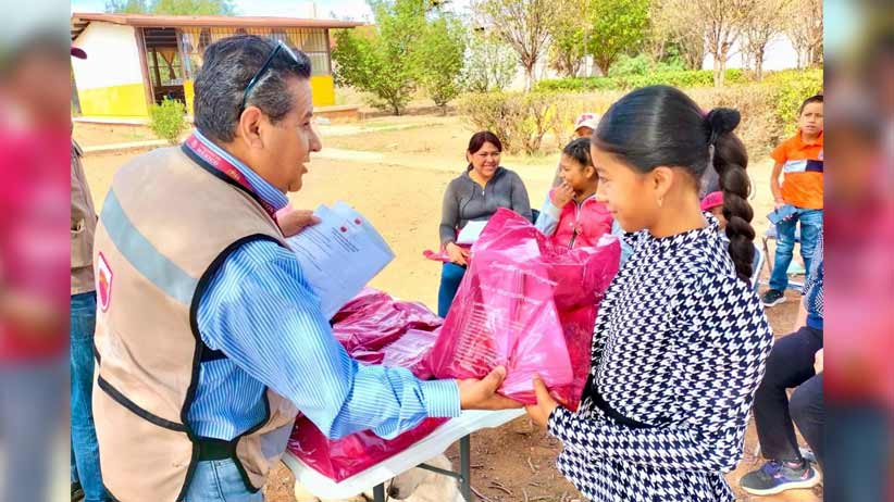 Este miércoles, niñas, niños y adolescentes de una comunidad y la cabecera municipal de Pinos recibieron, en compañía de sus madres o padres, las libretas, lápices, colores y demás útiles con las que empezarán su ciclo escolar 2023-2024.