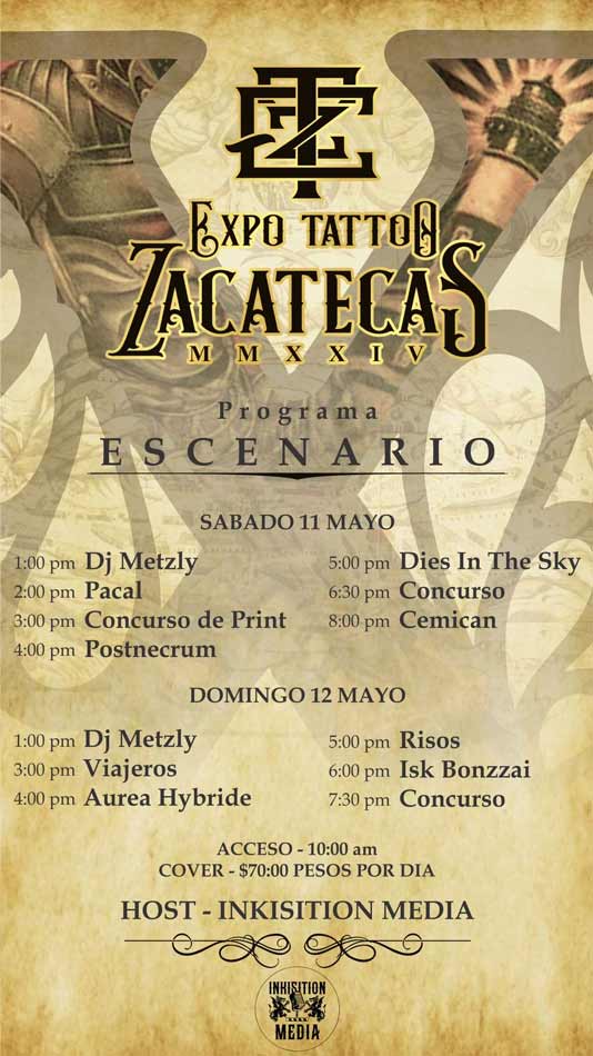 Durante los dos días de la Expo Tattoo, habrá diferentes actividades programadas, como shows de suspensión y música en vivo, a cargo de talento zacatecano. La presentación estelar estará a cargo de Cemican, una reconocida banda de metal prehispánico que se presentará por primera vez en Zacatecas, brindando un espectáculo único para todos los asistentes.