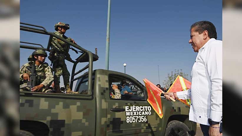 Luego de la bienvenida formal de las tropas, el mandatario y los miembros de la Mesa Estatal de Construcción de Paz dieron el banderazo de salida de los soldados, algunos de los cuales, previo a su despliegue, dieron un recorrido por las avenidas principales de Fresnillo para hacerle ver a la gente que tienen el acompañamiento del Ejército, la institución que mayor credibilidad tiene en el país.
