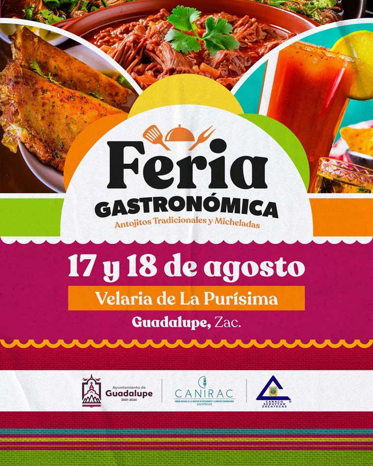 El Gobierno de Guadalupe a cargo de Pepe Saldívar, dio a conocer que como parte de la agenda de actividades culturales llevados a cabo bajo una visión familiar y de sano esparcimiento, se realizará la primera edición de ‘Feria Gastronómica, Antojitos Tradicionales y Micheladas’, como parte de la estrategia para fortalecer la economía local.