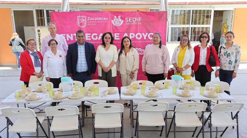 La Presidenta Honorífica del Sistema Estatal para el Desarrollo Integral de la Familia (SEDIF), Sara Hernández de Monreal, entregó los equipos para el funcionamiento de los espacios alimentarios en los planteles educativos, específicamente en el preescolar “Juventino Rosas”, de Pánfilo Natera, y la Escuela Primaria “Miguel Auza”, de Sombrerete.