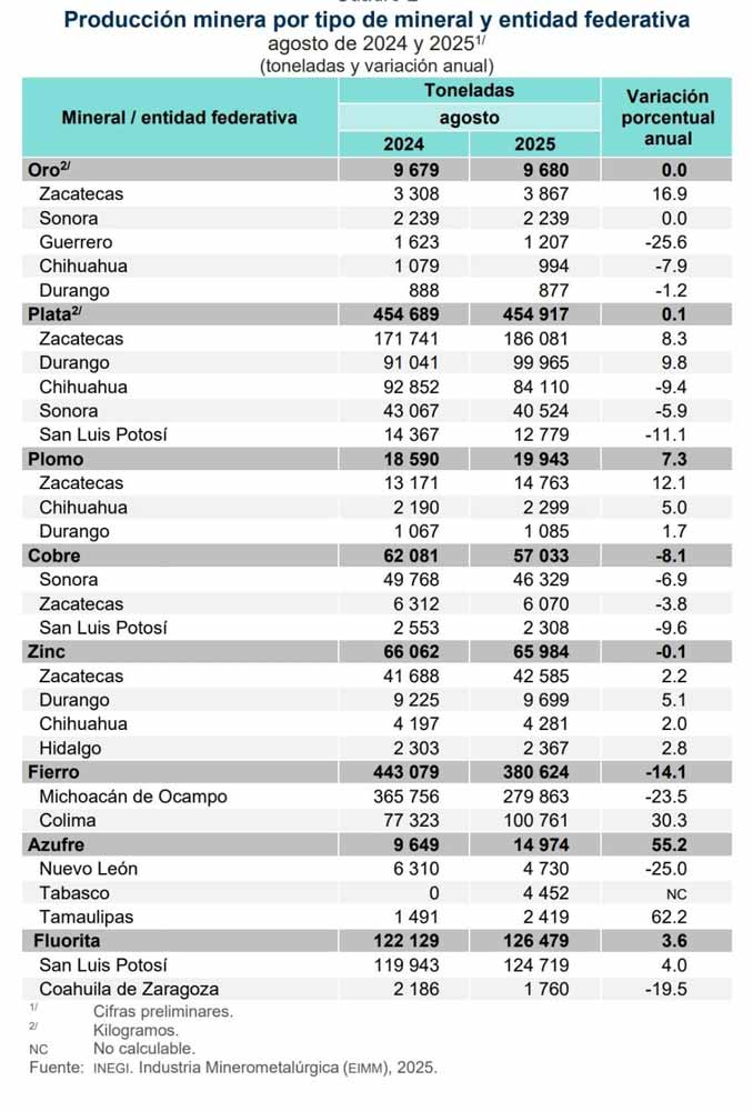 El estado registró una variación anual positiva de 16.9 por ciento en la producción de oro y de 8.3 por ciento en la producción de plata, con lo que consolida su liderazgo en metales preciosos, frente a entidades mineras como Sonora, Durango y Chihuahua.